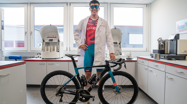 Afterward, the athletes were given a tour of the lab, including a live demonstration. With a wink, Patrick Lechner noted that the athletes also run a “mini-lab” in their daily lives—for example, when precisely mixing their carbohydrate drinks. As a token of appreciation, team shirts were exchanged.