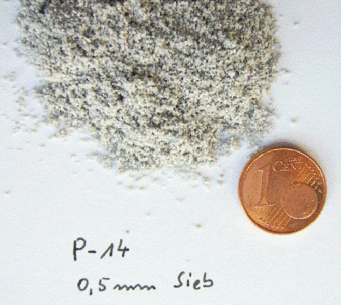 For the additional preparation, the sample comminuted down to 4 mm, was mixed with dry ice and put through the 1 mm sieve with the PULVERISETTE 19. The material could be comminuted very well. Therefore the first requirement was met: 100 % of the sample was comminuted down to < 1 mm. In order to generate finer materials, again dry ice was mixed in and it was attempted to comminute the material with the cutting mill with a 0.5 mm sieve. This attempt failed: the possible obtainable final fineness with a cutting mill is limited to a sieve throughput smaller than 1 mm.