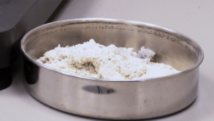 In the second test, a part of the pre-comminuted sample from the PULVERISETTE 19 LARGE, was further processed in the PULVERISETTE 14 premium line. Two hundred milliliters of the sample were comminuted within 38 seconds to a final fineness < 500 µm. The PULVERISETTE 14 premium line was equipped with the cutting rotor, as well as additionally connected to the small volume Cyclone separator, which was operated passively.