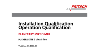 IQ/OQ documentation for the independent utilization for the support of instrument qualification in the quality management system for the Planetary Micro Mill PULVERISETTE 7 classic line.